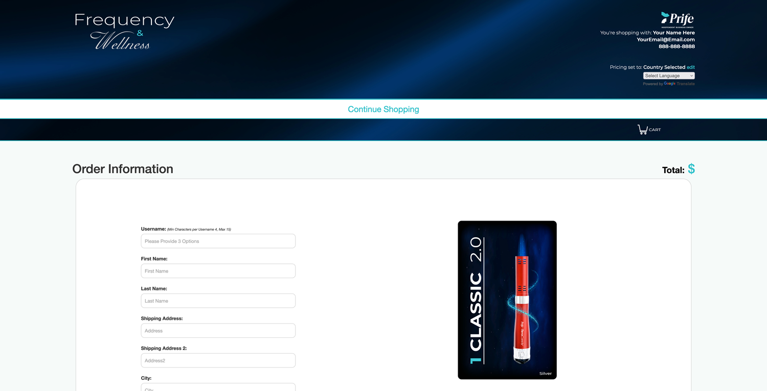 This site is a one stop shop for your prospective customers to order any of the incredible products with Prife International.